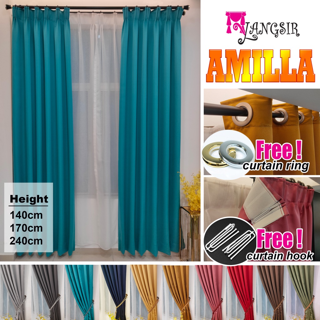 Langsir Tirai Curtain Hook Type Semi Blackout Kain Siap Jahit Tingkap Pintu Bilik Sliding Door Window Murah Viral M01 Lazada
